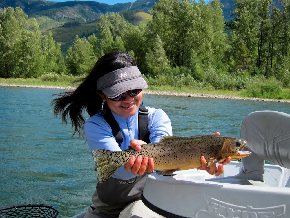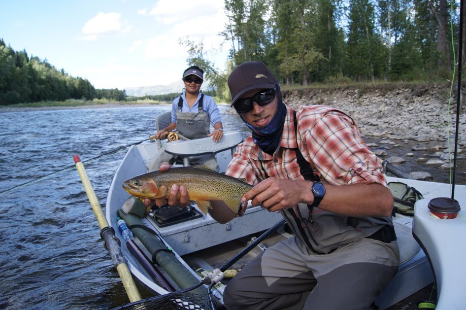 Within minutes of drifting into the first run we started rising cutties out of their camouflaged rock beds. Adam's lady pulled the first big beaut of the day.