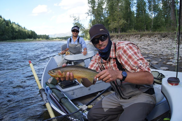 Within minutes of drifting into the first run we started rising cutties out of their camouflaged rock beds. Adam's lady pulled the first big beaut of the day.